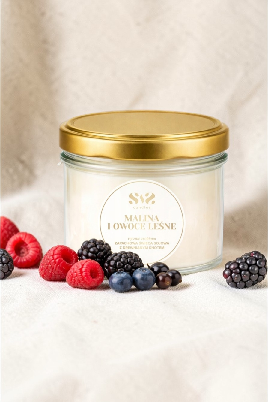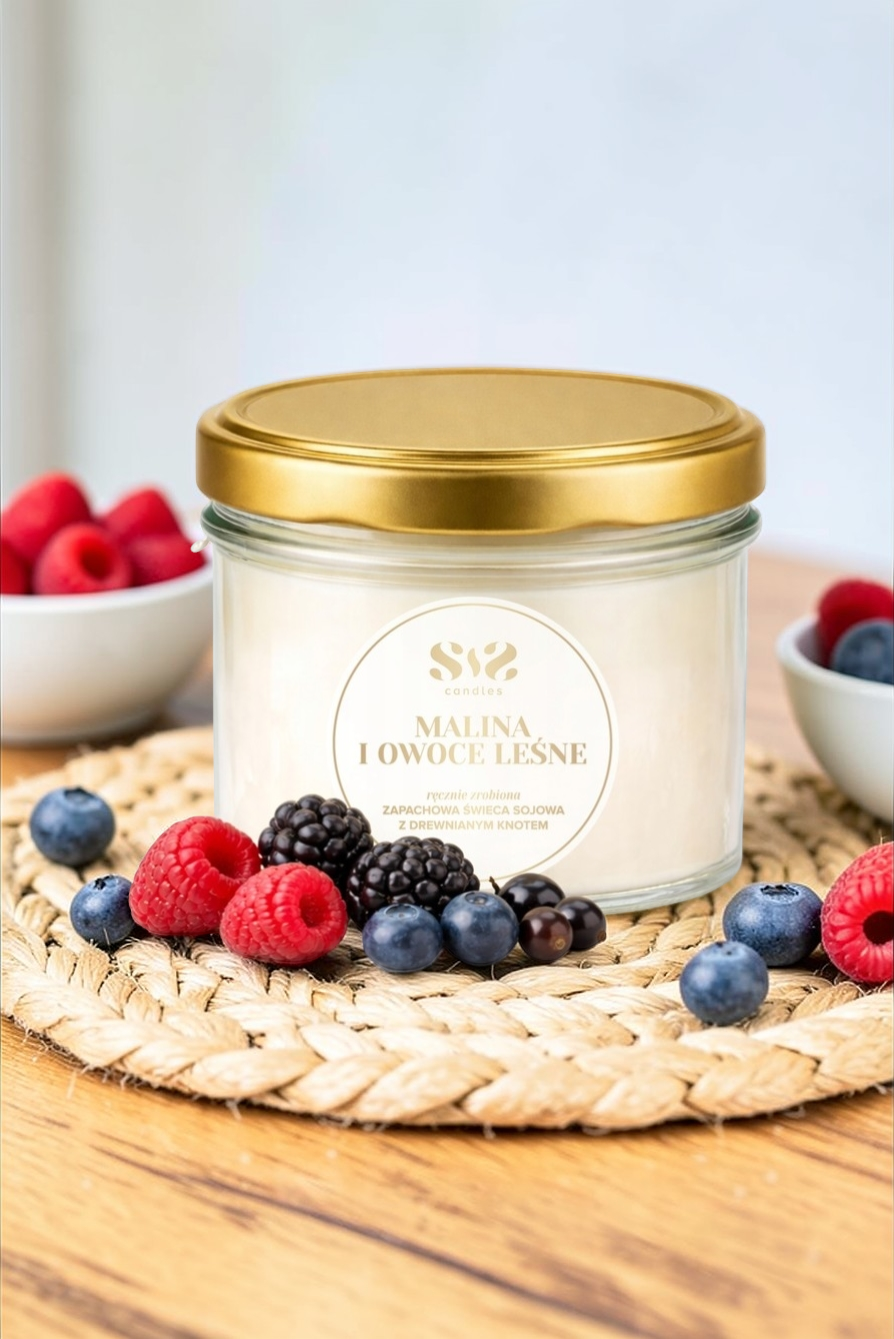 Ożyw swój dom zapachem malin i owoców leśnych! Zapal świecę i w kilka chwil stwórz klimat jak na letnim spacerze po lesie — słodko, soczyście i przytulnie!