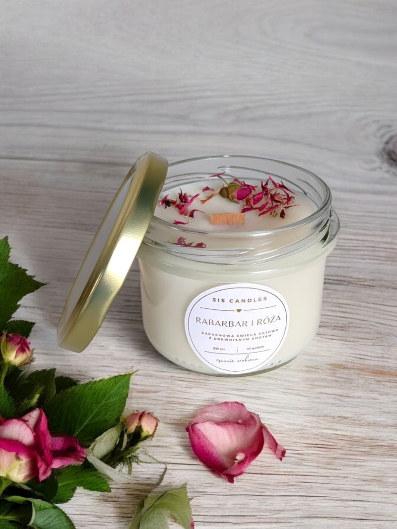 Rabarbar i Róża Świeca sojowa z drewnianym knotem 235 ml Sis Candles