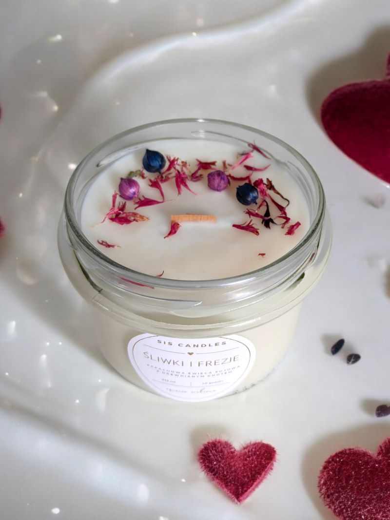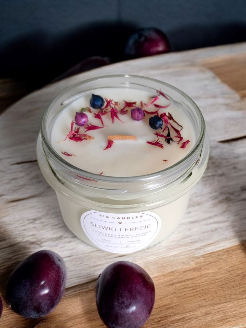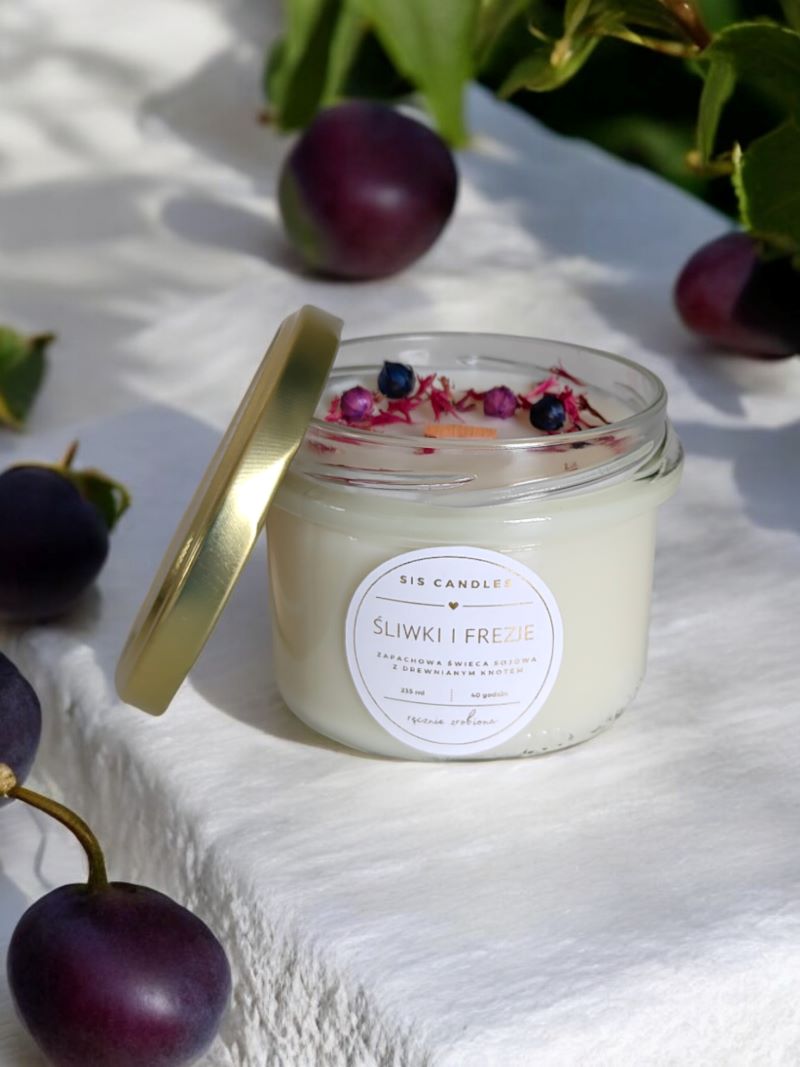Poczuj słodycz śliwek i świeżość frezji — zapal świecę i zanurz się w zmysłowej harmonii kwiatowo-owocowych aromatów!