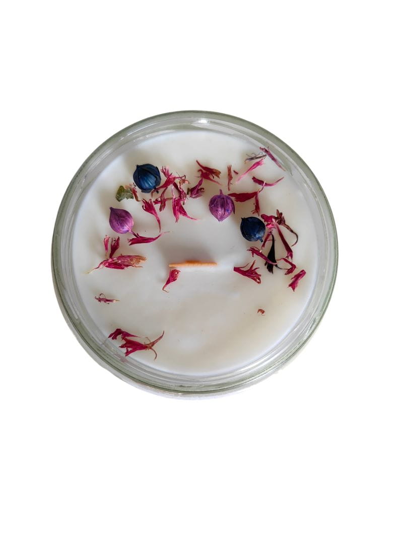 Świeca zawiera naturalne, suszone ozdoby, które możesz wyjąć po roztopieniu wosku lub zostawić, by dodatkowo cieszyły oczy. To idealne połączenie estetyki i funkcjonalności.