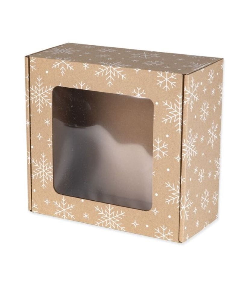 Zapakuj na przent | Pudełko prezentowe EKO w śnieżynki OKNO 20x20x10 cm z usługą zapakuj na prezent